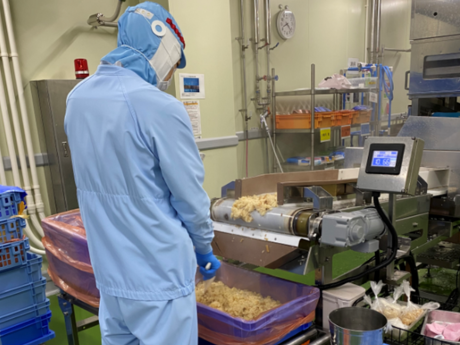 食品スーパー”アルビス”で販売される、お惣菜をつくる工場内でのお仕事です。